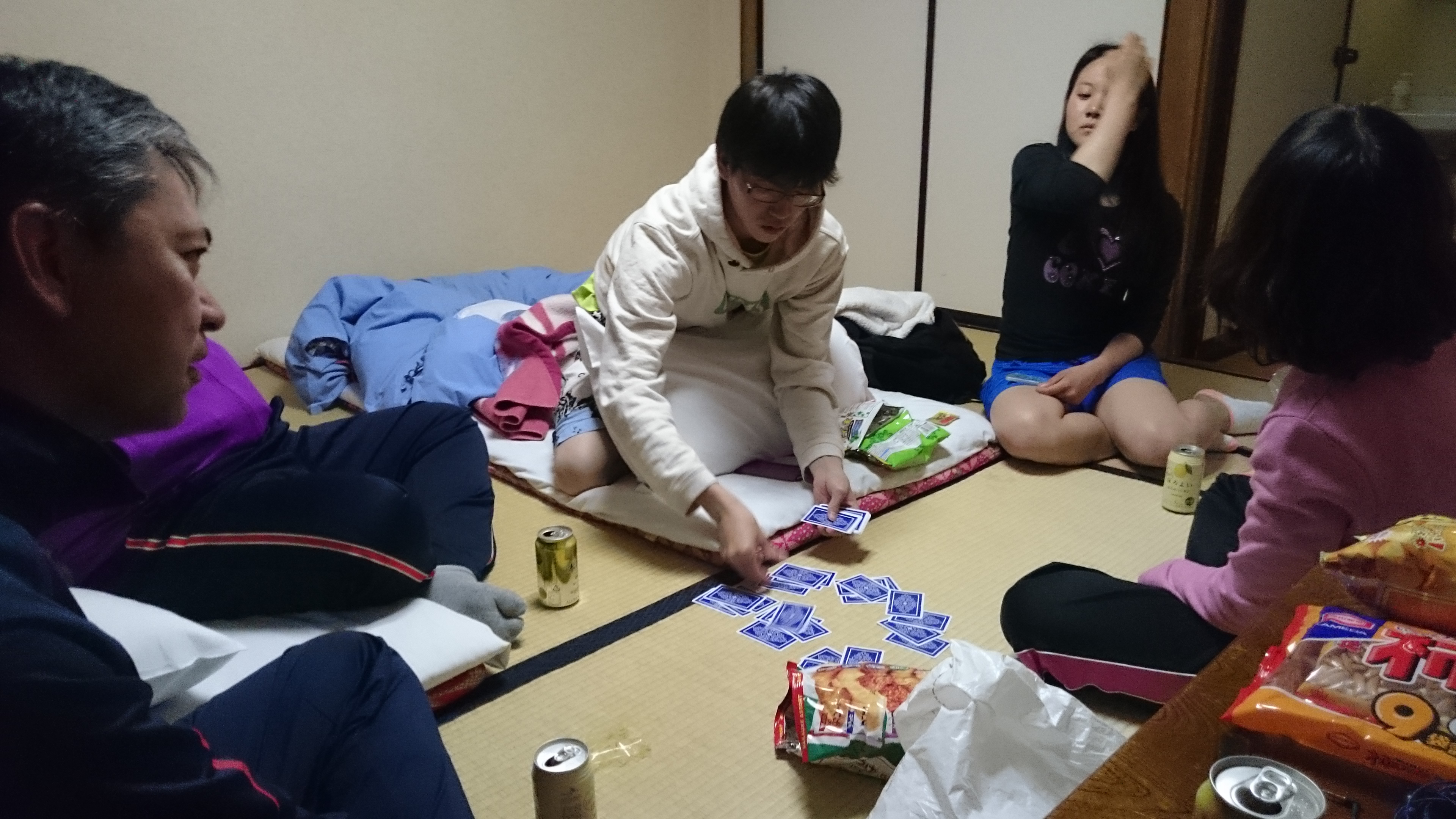 夕食をはさみ、懇親会ではトランプでゲームしました。