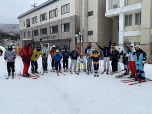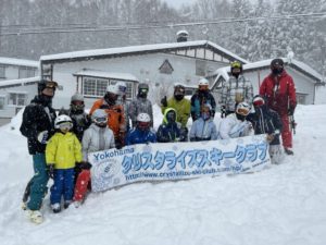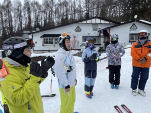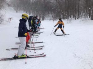 2日目は、記念撮影後、北志賀スキースクールより講師を派遣していただいて、実践的な講習をしていただきました。