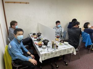 食事は、飛沫が拡散しないように、仕切りを設けていただきました。