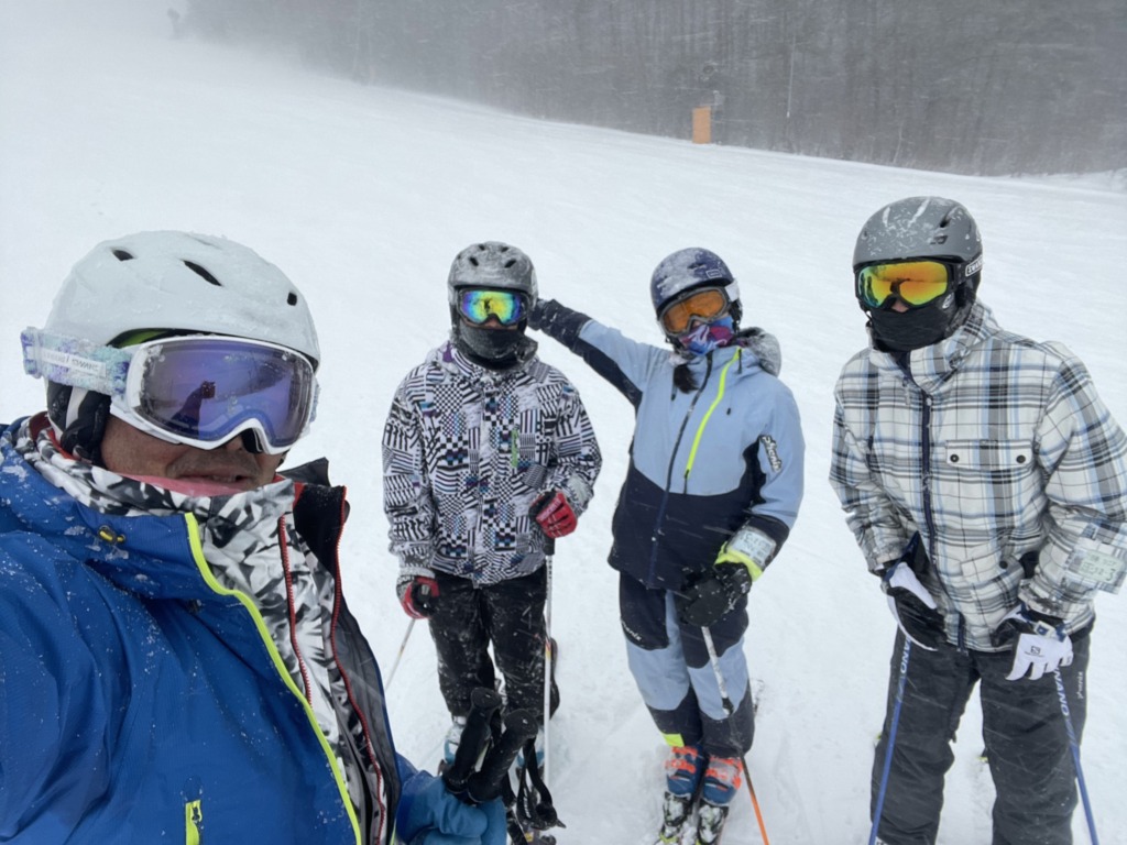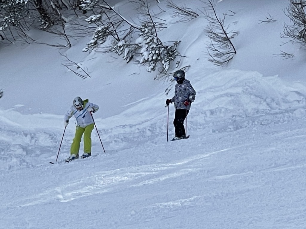 天候は、1日目はまさかの雨…でも午後には突然吹雪になりました。2日目は雪でしたが、時々晴れ間が広がり、絶好のコンディションで滑ることができました。