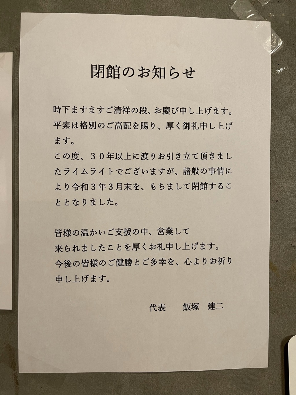 長年お世話になっておりましたライムライトが…