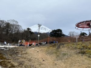 開催1週間前、かぐらスキー場は、雪の「ゆ」の字もなく、緑々とした地肌(ライブカメラ)が見えていました。