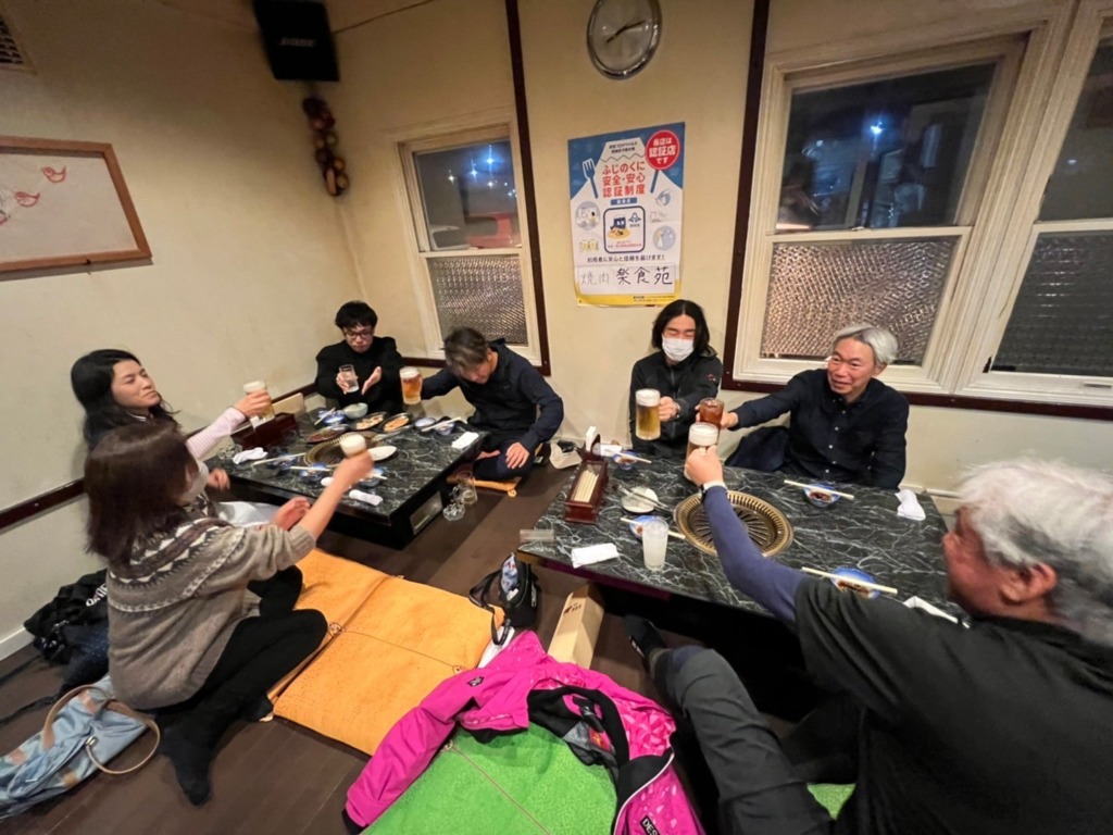 夕食は御殿場市内の焼き肉屋さん、ここでも各自の疑問をデモをにぶつけての熱い宴会をしました。