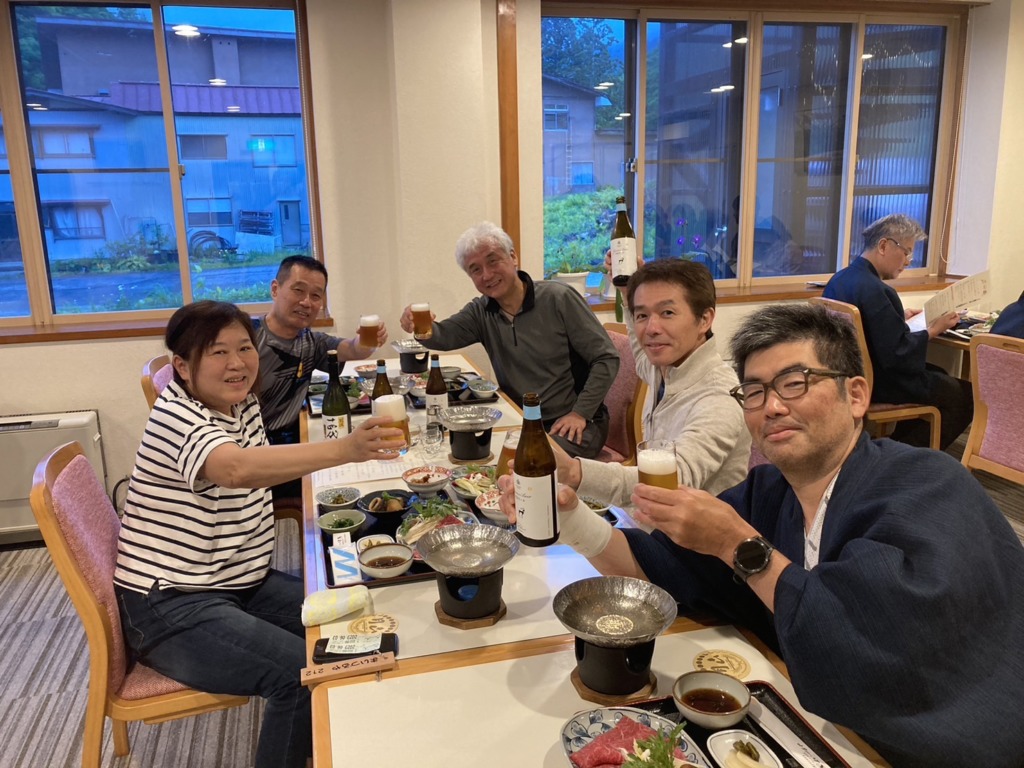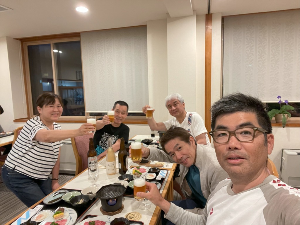 当初は2日(金)の夜に移動の予定でしたが、参加者全員が金曜日の早出で都合がつき、まいづるやさんの夕食を2回楽しむために、昼に出発しました。